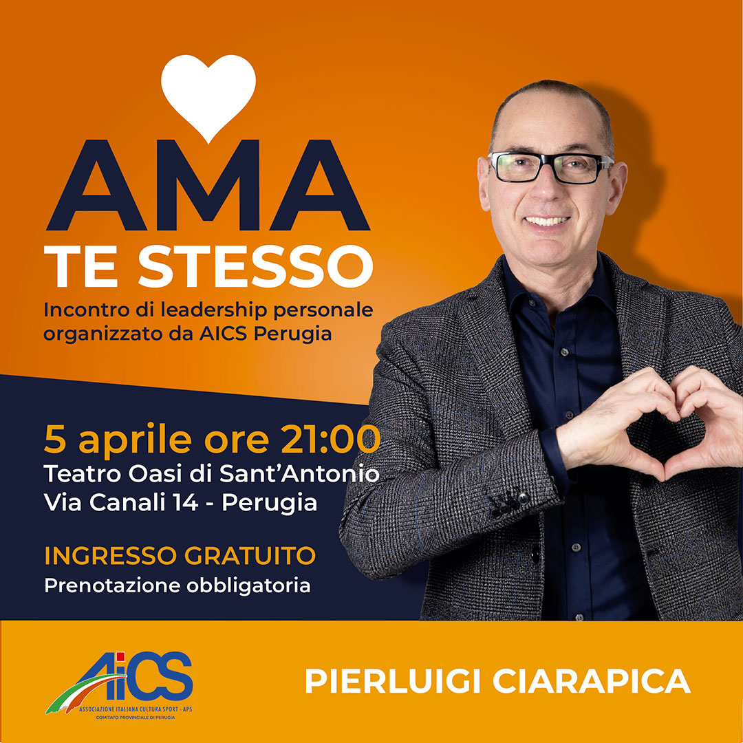 Benvenuti all’incontro “Ama te Stesso” organizzato con cura da AICS Perugia, un’opportunità unica dedicata alla scoperta della leadership personale. Un viaggio emozionante condotto da uno dei massimi esperti del settore, Pierluigi Ciarapica, che condividerà preziosi insegnamenti e strategie per coltivare l’amore verso se stessi.